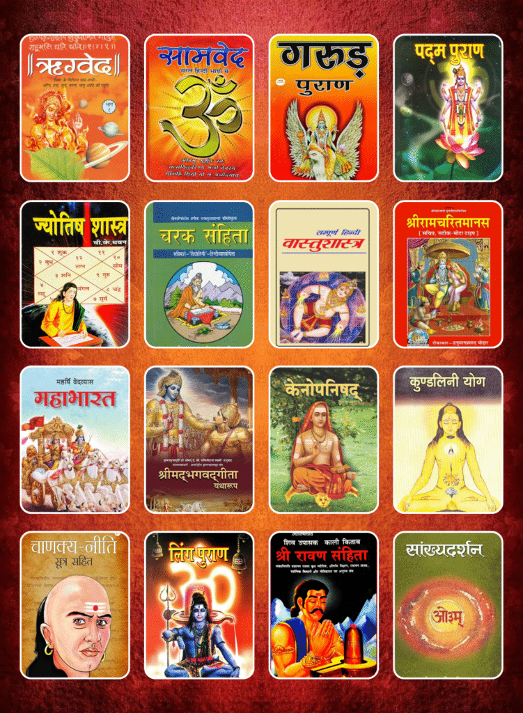 4 वेद + 100 आयुर्वेद ग्रंथ + 18 महापुराण + 108 उपनिषद + 51 चालीसा + 6 शास्त्र + संपूर्ण श्रीमद् भागवत गीता सहित हिंदू धर्म के अन्य पवित्र ग्रंथ